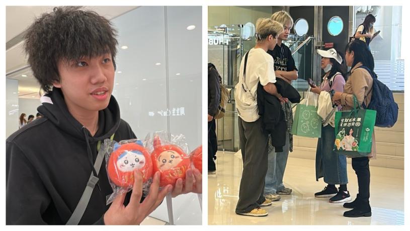 日本人氣動漫Chiikawa(吉伊卡哇)在港首間官方期間限定店,於今日(15日)第二階段在尖沙咀海港城發售多款經典公仔。繼昨日活動引來千人「打蛇餅」,主辧方須採取實名登記制疏散人潮,今早11時正式開賣後秩序大致良好。有粉絲成功買得心頭好,笑言:「開心囉,搶到飛(預約券)已經好幸運。」惟現場亦出現「黃牛黨」,有人即時收起排隊人士購得的公仔,亦有人在店外放售公仔。