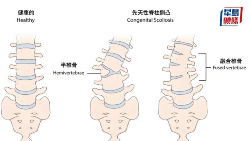 先天性脊柱側彎屬於先天結構問題,源於胎兒期脊柱椎體形成或分節過程的發育異常。常見的畸形如半椎體即椎體一側發育不全,或椎體融合/分節不良,這些結構缺陷導致脊柱在後續生長中無法保持正直。