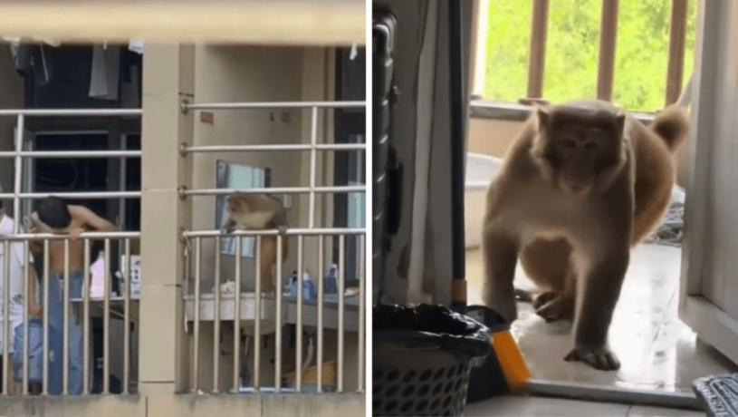 貴州大學一名學生20日發佈一隻猴子闖入男生宿舍的影片,引發網絡熱議。影片顯示,4名男生在圍欄處與一牆之隔的猴子互相張望,猴子突然躍上圍欄時,眾人驚慌躲避,其中3人衝回房間,1人躲進廁所。該影片至今已獲逾275萬點讚。
