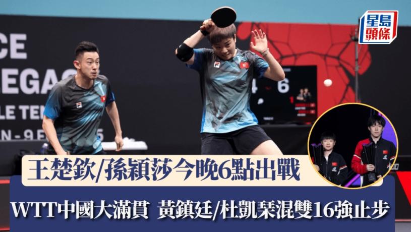 WTT中國大滿貫賽周二繼續在北京石景山首鋼園舉行,港隊混雙組合黃鎮廷/杜凱琹今午於16強鬥國家隊代表袁勵岑/王藝迪,最終局數輸1:3,無緣8強。而國家隊人氣組合王楚欽/孫穎莎,今晚6點就會搭檔出戰,在混雙8強鬥沙利恩/歌柏迪。