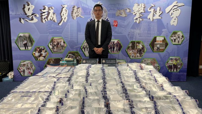 警方展示案中檢獲的氯胺酮及可卡因。曾志恆攝