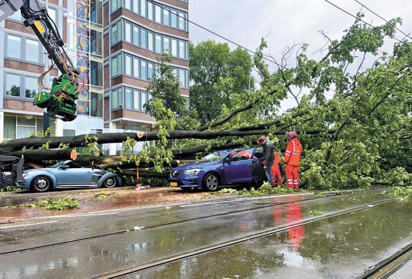 風暴「本傑明」23日襲擊荷蘭,導致該國全國交通嚴重受阻。荷蘭皇家氣象研究所當天發布第二高級別的「橙色預警」,預計風速最高可達每小時120公里。