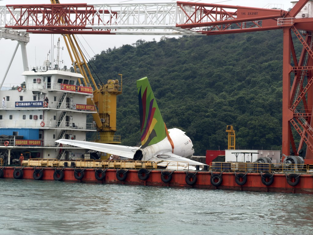 機場貨機墮海|打撈團隊成功吊上機尾 尋回兩黑盒送實驗室檢查
