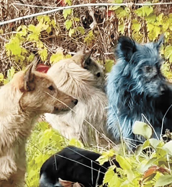 多隻毛色呈藍色的流浪狗(小圖)被拍到出現在烏克蘭切爾諾貝爾核事故遺址(大圖)。路透社/網上圖片