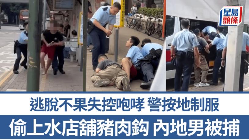周日(10月26日)早上7時許,上水一名持雙程證的31歲男賊,懷疑盜竊龍琛路一店舖兩個豬肉鈎,之後逃之夭夭。兩名男市民追截但不果,賊人更試圖襲擊其中一名市民。警員接獲報案後,趕至制服賊人,並以涉嫌店舖盜竊及襲擊將其拘捕,事後賊人被送往北區醫院檢查。