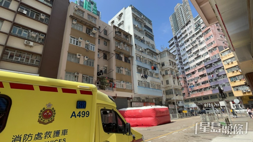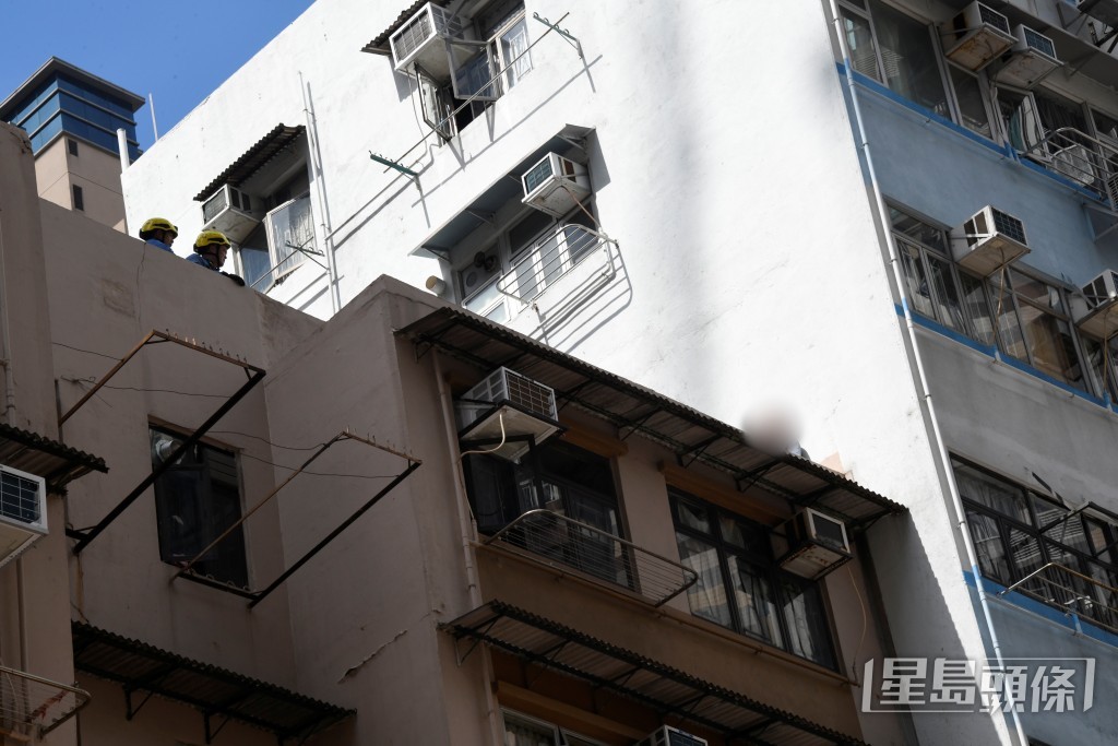 今(31日)中午12時14分,大角咀槐樹街21-25號健理樓,警方接報指一名男子在該樓天台行來行去,一時又危坐簷篷,消防接報到場,張開救生氣墊戒備,警方亦到場與消防向事主展開游說,至中午1時半雙方仍在對峙。