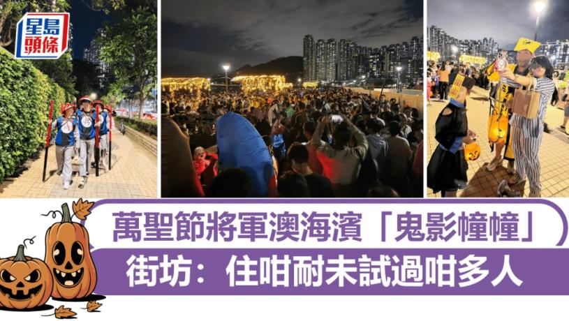 萬聖節月黑風高夜將軍澳海濱「鬼影幢幢」,清兵、熱狗滿場飛,連道士也湊熱鬧來捉鬼。海濱長廊昨日(10月31日)晚上人頭湧湧,虛冚程度不輸農曆年花市。街坊形容今年情況誇張,有人坦言「我住將軍澳咁耐從來未試過咁多人」。詳情見下圖及下文: