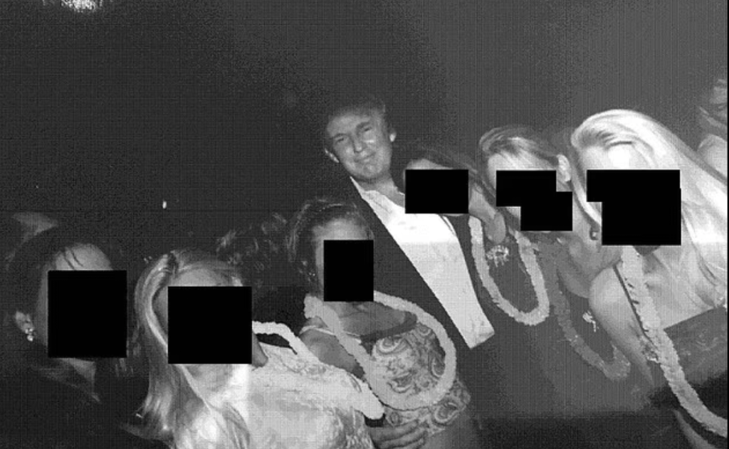文件同時曝光了多張愛潑斯坦與多位高層人物的合照,包括前總統特朗普(Donald Trump)和克林頓(Bill Clinton)。在其中一張照片中,特朗普與六名女性合照,另一張則顯示他在飛機上與一名女性同框,照片中女性的臉部皆被遮蓋。此外,特朗普還被拍到與愛潑斯坦一同參加社交活動。