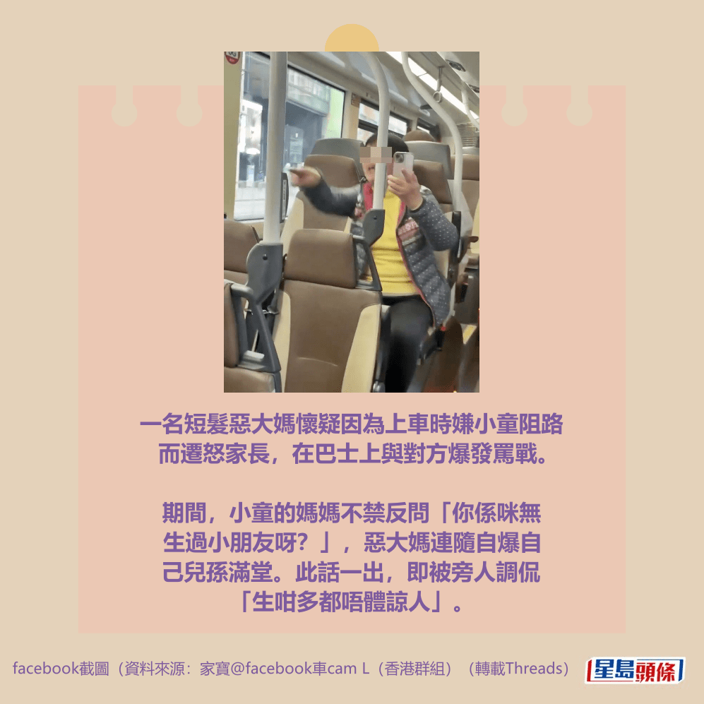 疑嫌小童阻路遷怒家長 港媽反駁:你係咪無生過小朋友呀? 巴士惡婦:我兒孫滿堂逐張睇↓↓↓↓