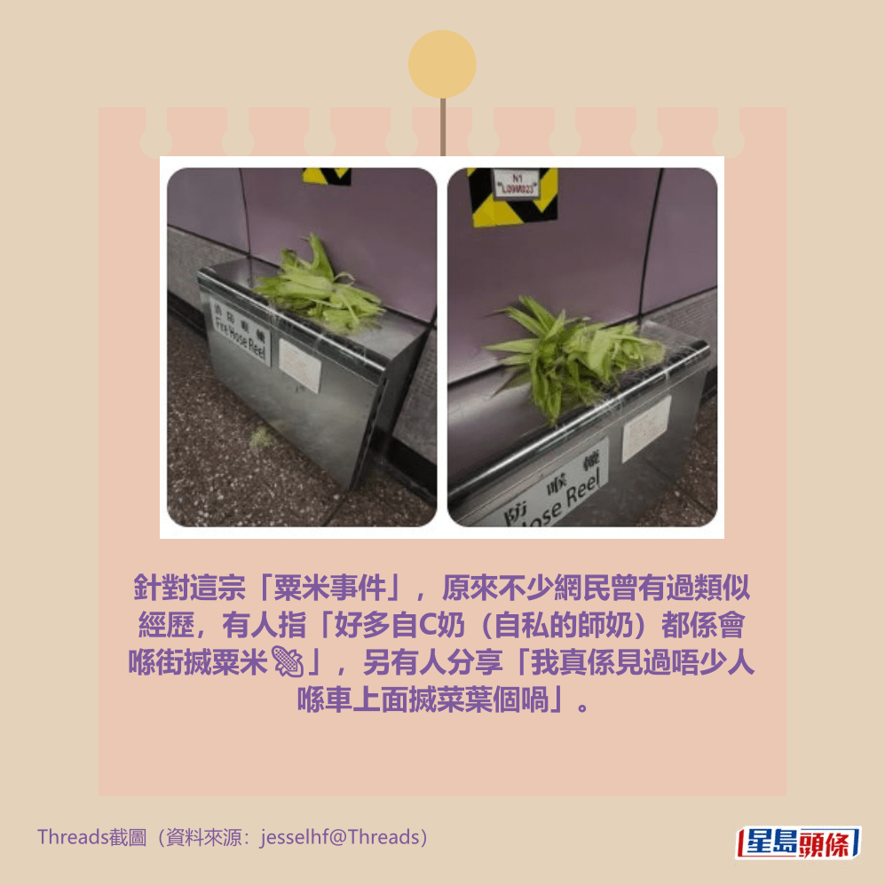 針對這宗「粟米事件」,原來不少網民曾有過類似經歷,有人指「好多自C奶(自私的師奶)都係會喺街搣粟米🌽」,另有人分享「我真係見過唔少人喺車上面搣菜葉個喎」。