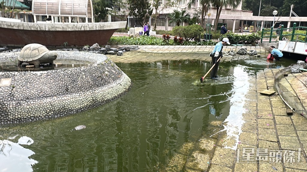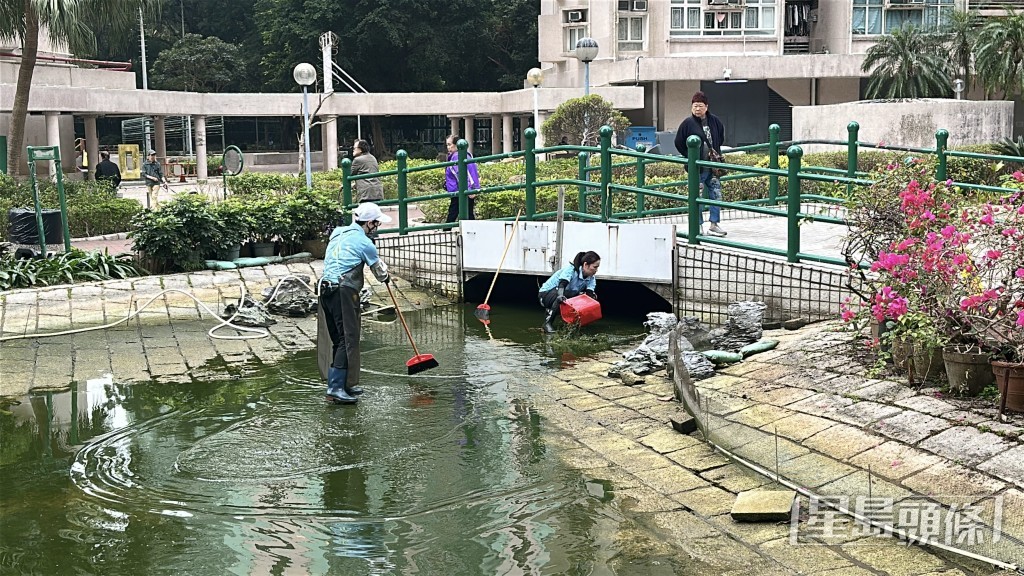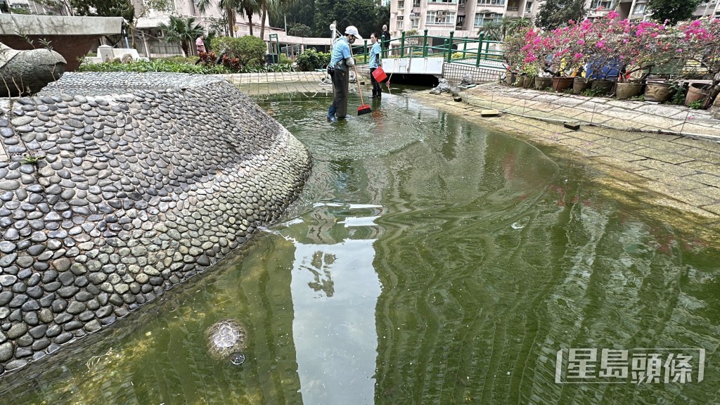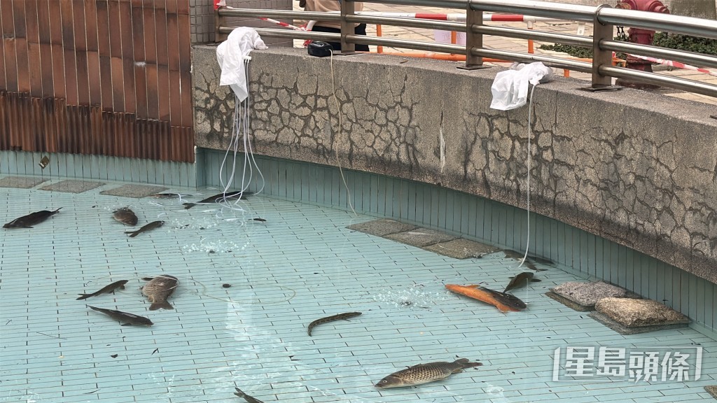 將軍澳景林邨景棉樓對出一個魚池,因清洗魚池關係,有逾百條魚被清潔工人撈起後,疑有人未有妥善提供足夠氧氣,導致逾百條魚缺氧慘死。有居民發現報警求助,警方將案件列為「殘酷對待動物」跟進,並由將軍澳警區刑事調查隊接手處理。《星島頭條網》今(27日)早上到景林邨了解事件,發現有5至6名工人仍進行洗池工作,將數十條剩低的魚移往另一原本養龜的水池,惟水池內僅放置淺水,氧氣泵亦很弱,眼見多條魚已翻側死亡。
