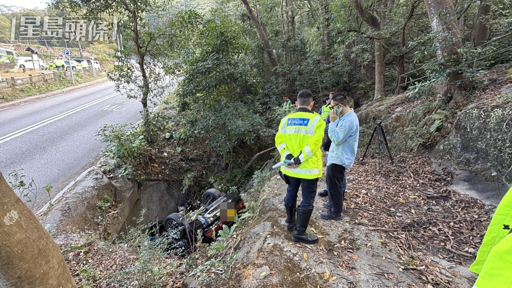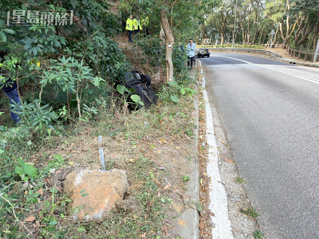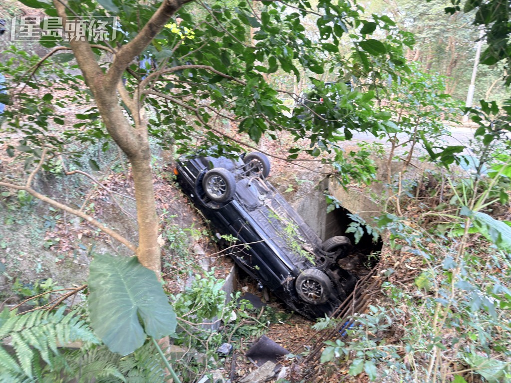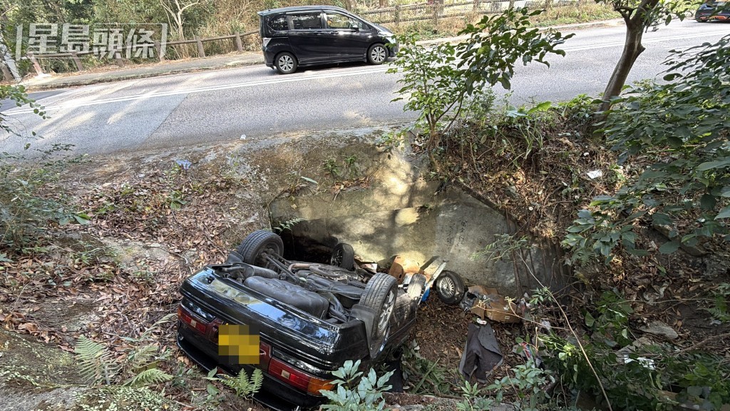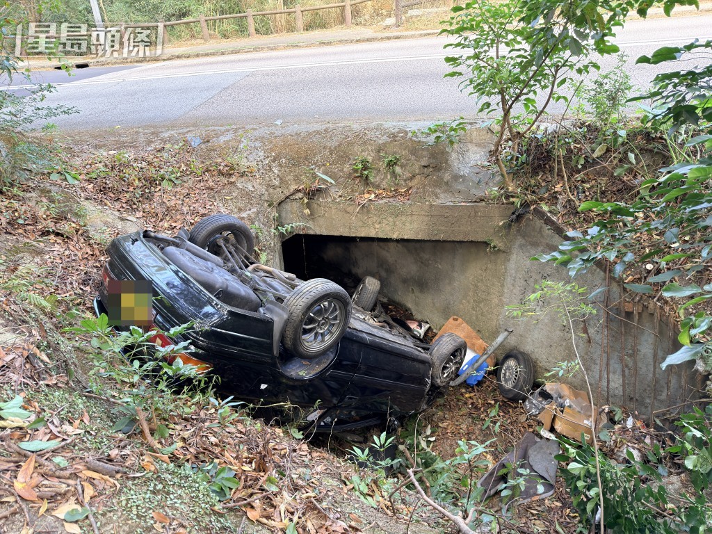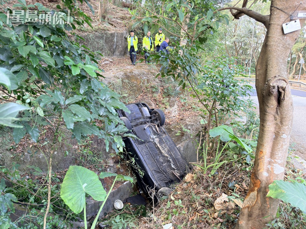 私家車墮坡「反肚」。梁國峰攝