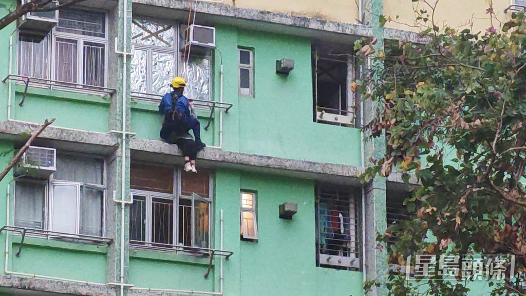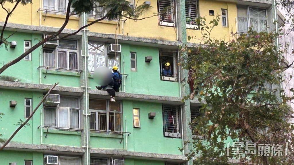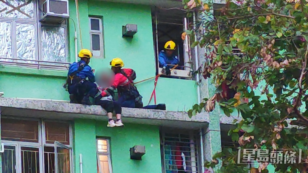今(7日)早上7時15分,筲箕灣耀東邨耀明樓,保安報案指一名女子爬出6樓單位窗外,危坐簷篷,消防接報到場,展開游說,其間飛將軍游繩而下,與單位的同袍內外夾擊,將女事主抱救返回單位內,過程約1小時,其後將女事主送院檢查。警方正了解其尋死原因。
