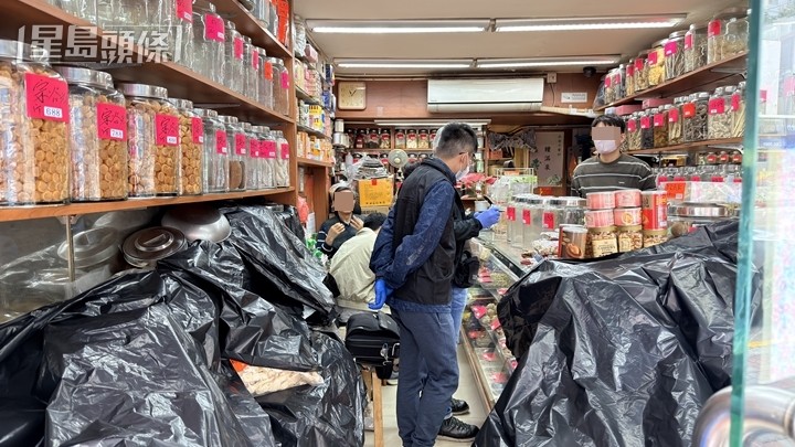 人員到場翻查閉路電視調查,正追緝賊人。現場消息稱,店內部分花膠、鮑魚、魚翅及燕窩等貴價貨品被偷走,損失有待點算。