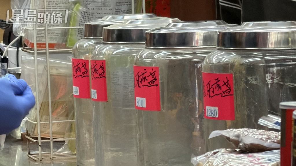 多個裝載貴價參茸海味的玻璃樽被清空。