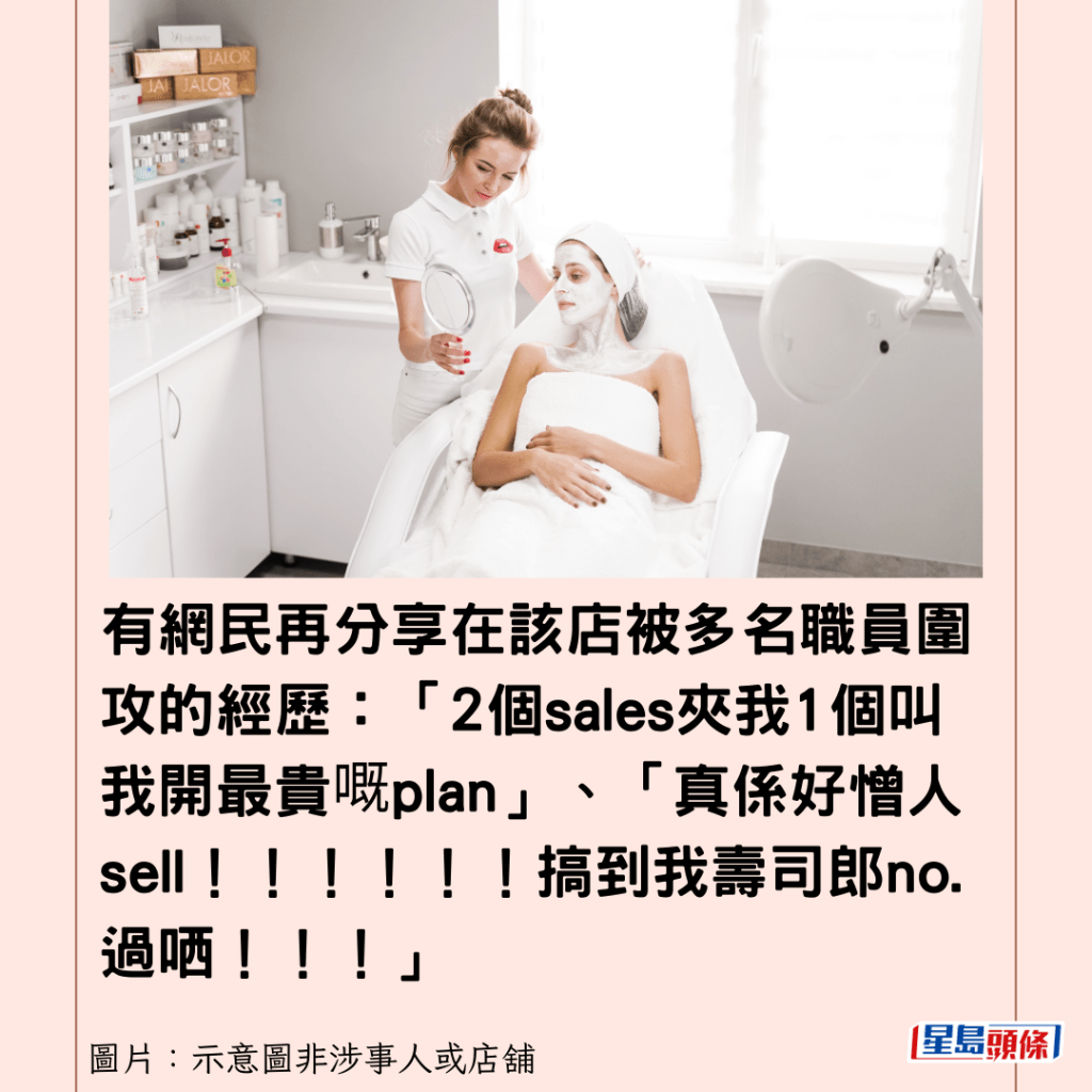 有網民再分享在該店被多名職員圍攻的經歷:「2個sales夾我1個叫我開最貴嘅plan」、「真係好憎人sell!!!!!!搞到我壽司郎no.過哂!!!」另有網民聲稱,曾在該店遭狂銷近兩萬五千元的套餐,該網民直斥離譜:「我心諗買咩bra要買到接近2萬5呢?」