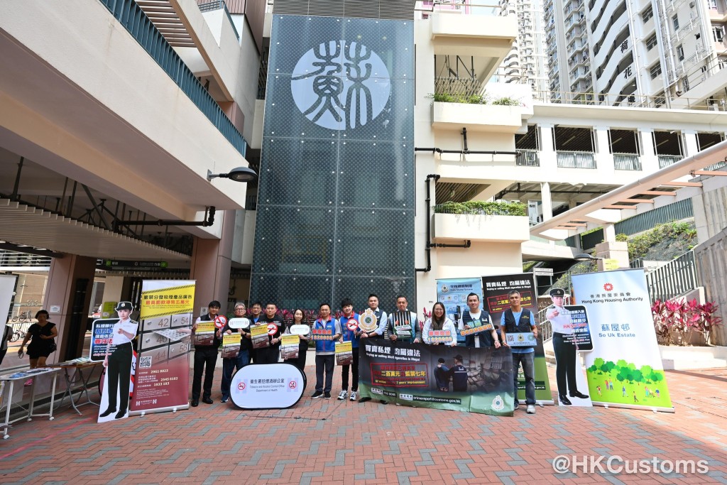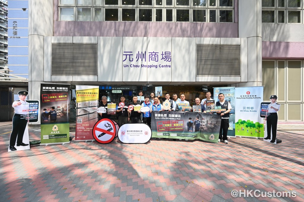 香港海關昨日(25日)與深水埗區區議員、衞生署控煙酒辦公室及房屋署,在深水埗蘇屋邨及元州邨進行聯合反私煙宣傳活動,並講解完稅標籤制度。