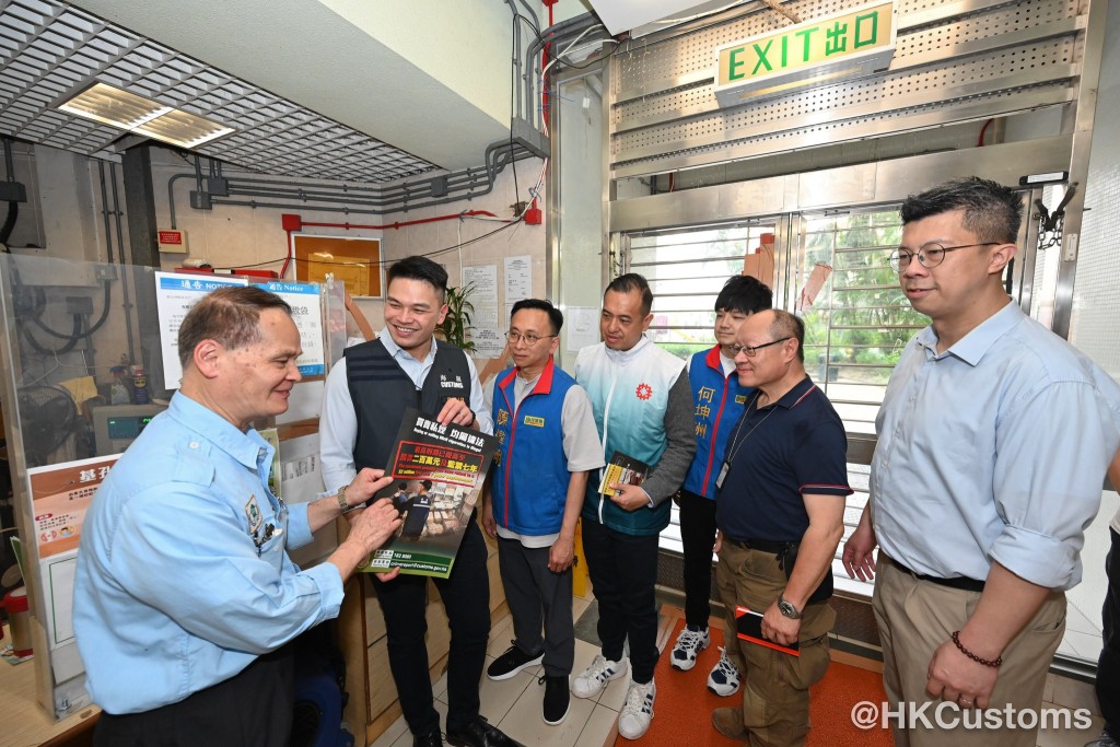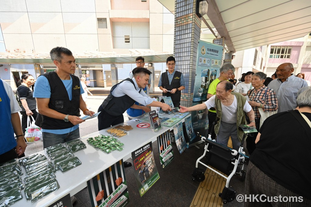 海關人員於屋邨範圍內巡查,並向居民介紹海關打擊私煙的工作和私煙相關罪行的新罰則,包括最高罰則已提高至罰款200萬元及監禁七年,以及攜帶超額香煙入境而不報關,最少會被罰款5,000元甚或監禁。