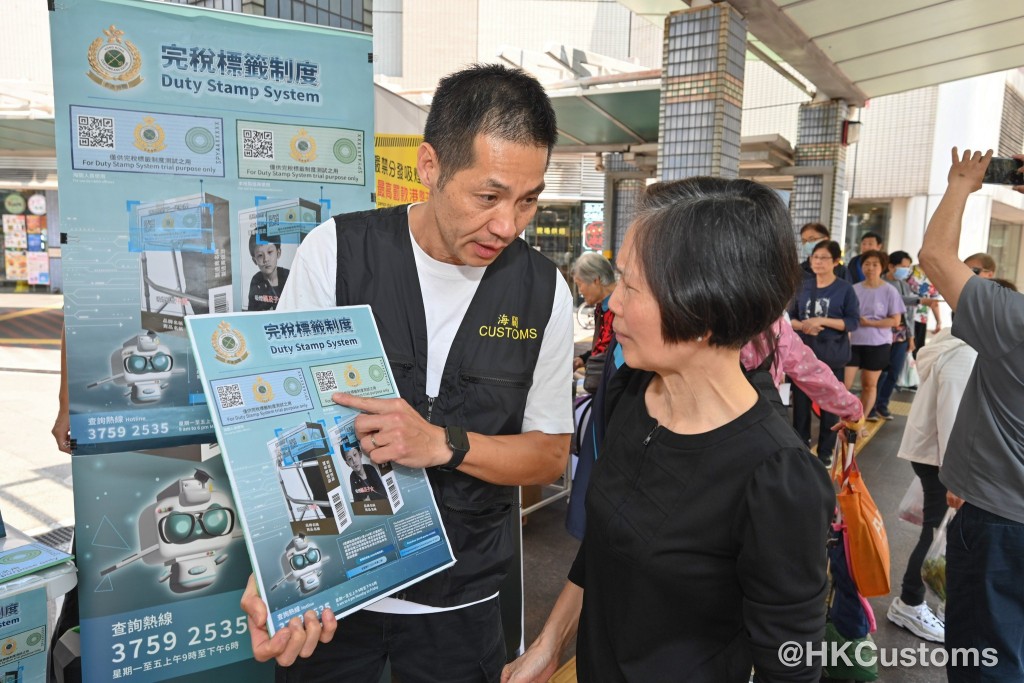人員亦向區議員、居民、報販及香煙零售商販介紹香港將施行的完稅標籤制度。海關已於本年初完成為期三個月的完稅標籤制度先導計劃,部門會繼續與各持份者保持緊密溝通,持續優化制度設計及執行細節。海關計劃於今年第四季實施首階段的完稅標籤制度,並於2027年第二季全面推行有關制度,期望有效區分已完稅和未完稅香煙,打擊「白牌煙」。