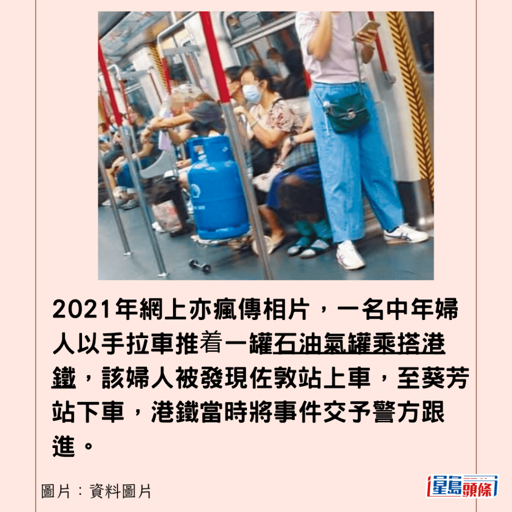 2021年婦人推石油氣罐搭車 港鐵報警