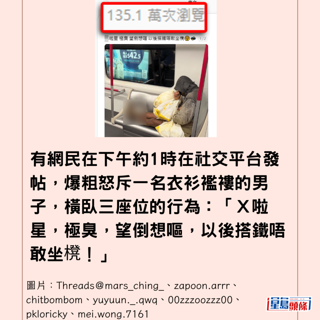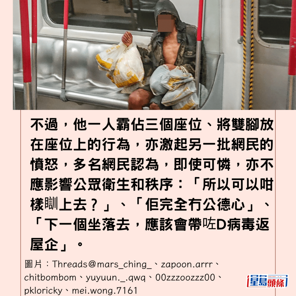 同場加映:港鐵驚現「爛腳奇人」橫臥三座位 網民激辯:可憐定自私?知情人揭心酸身份↓↓↓↓
