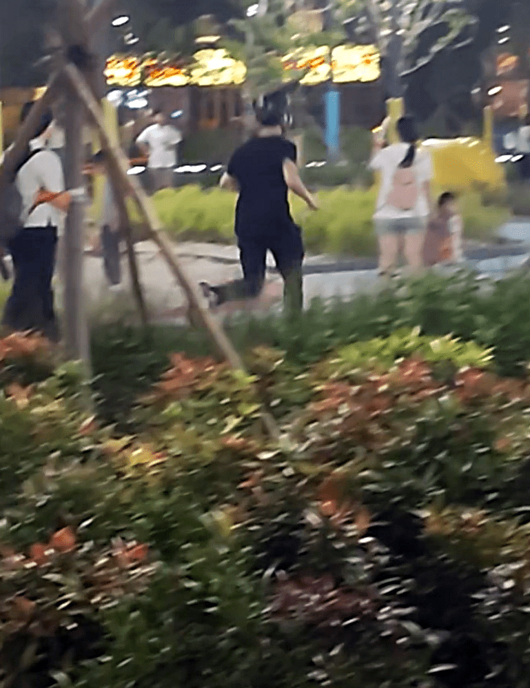 片段全長17秒,拍攝者從黑衣人後方拍攝,影片慢鏡展示過程,只見黑衣男像是一名年輕人,身穿黑衫黑褲在公園狂奔,當時公園內不少家長或傭工帶同小朋友嬉戲,黑衣男逕自走過,沒有停下來,其持刀動機惹人猜測。