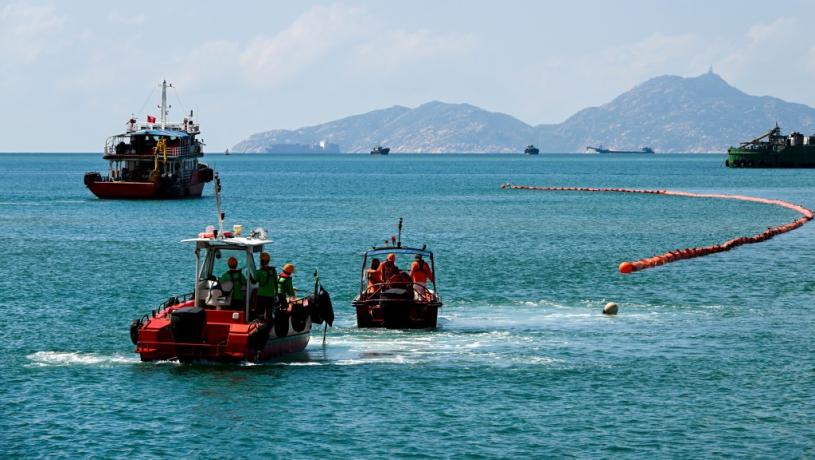 油污應變小組清理溢漏在海面的油污,而政府飛行服務隊及其他應變小組亦到場。