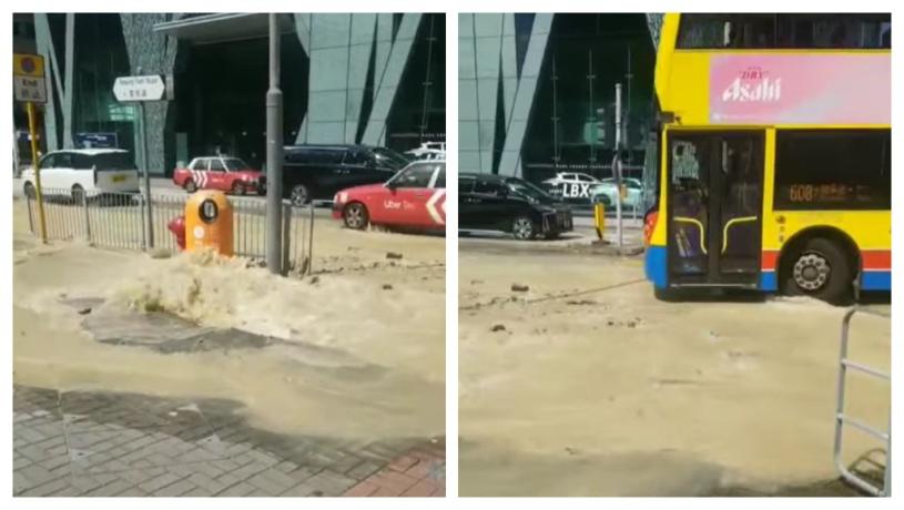 九龍灣爆水管。今日(19日)中午12時34分,常悅道近宏照道交界行人路地底有水管爆裂,大量食水夾雜沙泥湧出路面,恍變小噴泉。黃泥水淹浸行人路,更湧出馬路,途經的車輛需涉水而過。警員接報趕到處理,並通知水務署派員到場關上水掣,進行搶修。現場常悅道往宏光道方向近宏照道的慢線需要封閉。