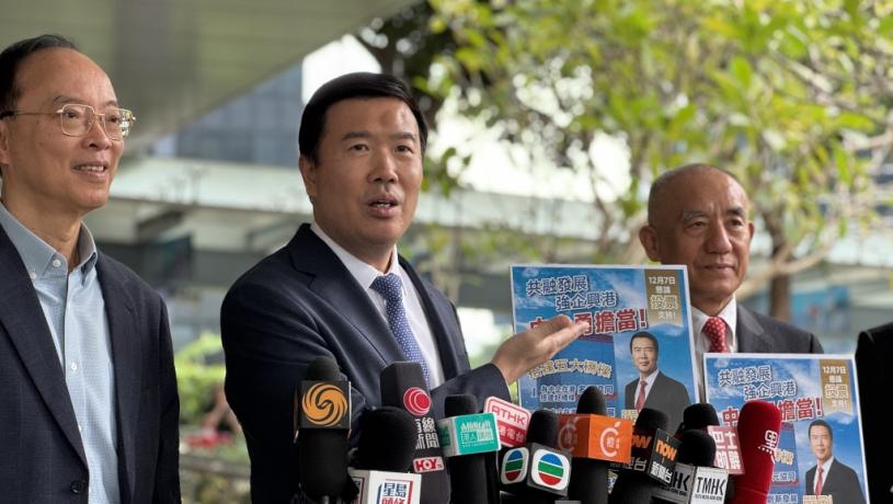 立法會提名期展開,獨立候選人林銘鋒、民建聯現任會計界立法會議員黃俊碩、商界(第三)現任立法會議員嚴剛,今日(28日)先後到政總報名參選。