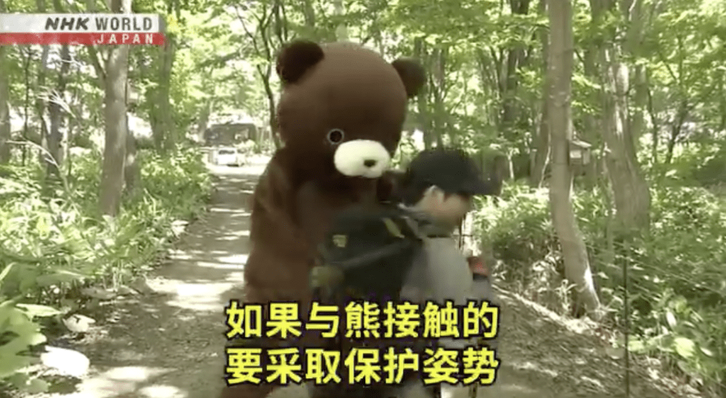 為應對日益嚴峻的熊患,NHK特別製作中文字幕的自保教學影片,教導市民及遊客在郊區或賞楓季出遊時如何應變。影片提醒,如遠距離發現熊,應立刻停步、保持冷靜,切勿奔跑或拍照挑釁;若熊未察覺人類存在,應悄悄離開現場;如熊已注意到你,則應慢慢後退,保持目光接觸但勿轉身逃跑,以免激發熊的追逐本能。