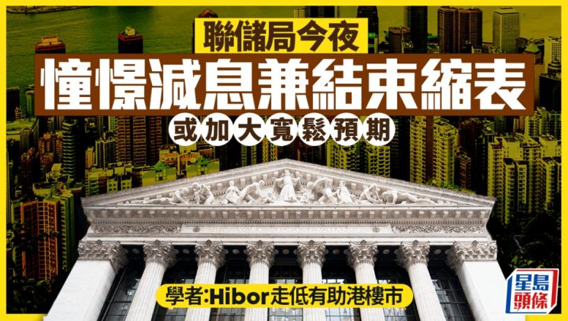 美國聯儲局將於本港時間周四(30日)凌晨宣佈議息結果,市場幾近肯定減息0.25厘之餘,更憧憬宣布結束量化緊縮(QT)計劃。有專家認為,若聯儲局一如預期宣布結束縮表,將加大市場對貨幣政策持續寬鬆的預期,並有利於股市、黃金及非美貨幣等資產表現;不過,亦有指美國減息也難扭轉經濟數據變差的大方向。本港影響方面,美國進一步減息將有助樓市進一步鞏固升勢,並有望反映到Hibor走勢,減低供樓人士的負擔。