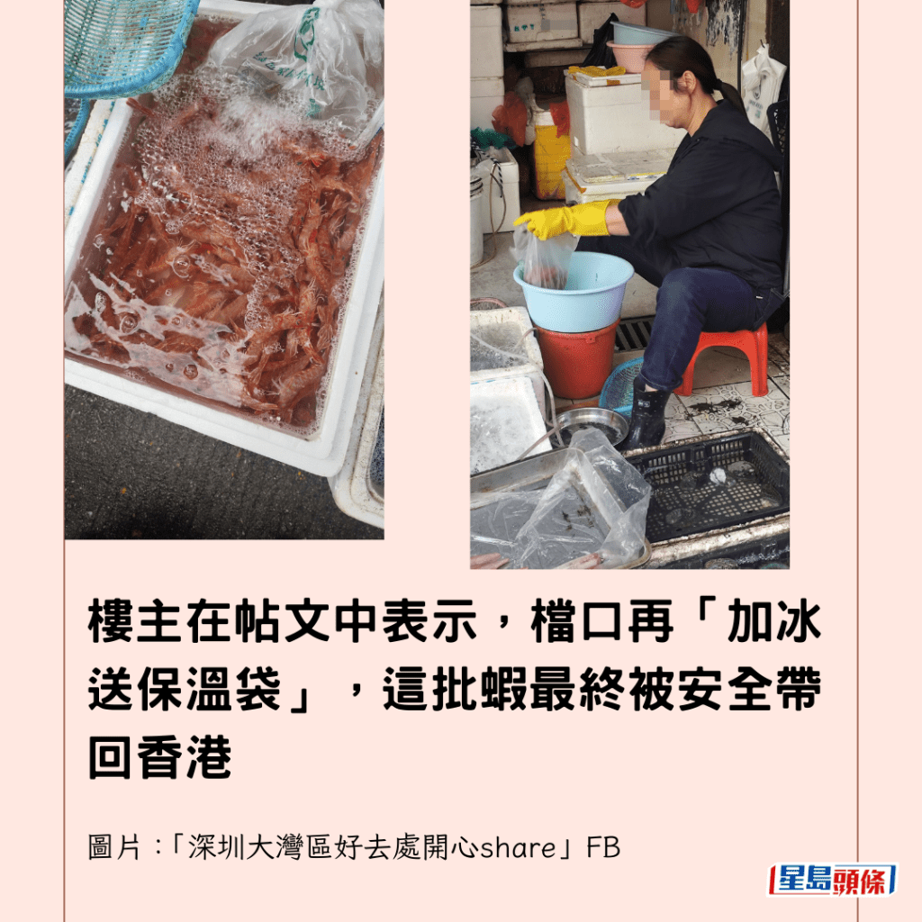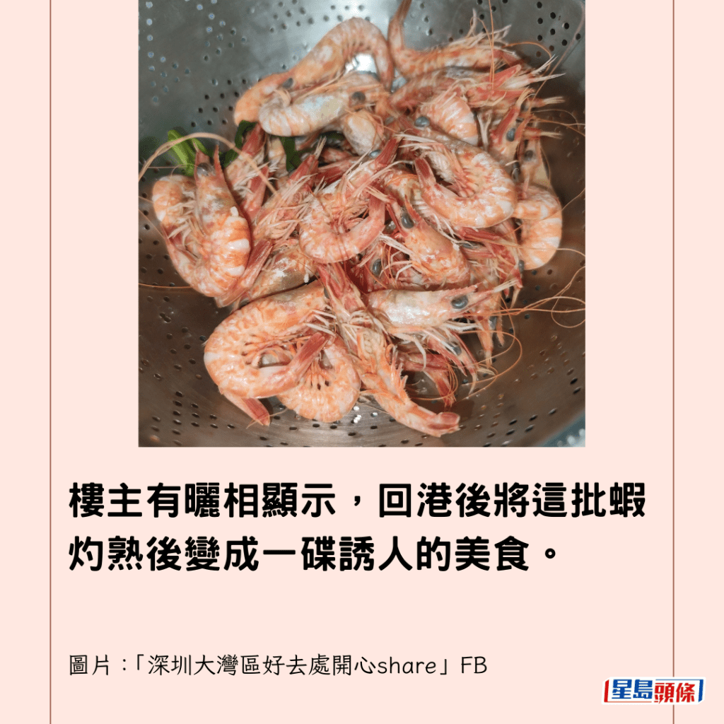 樓主在帖文中表示,檔口再「加冰送保溫袋」,這批蝦最終被安全帶回香港,樓主有曬相顯示,回港後將這批蝦灼熟後變成一碟誘人的美食。
