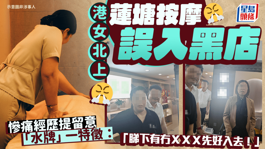 同場加映:港女北上蓮塘按摩誤入黑店 慘痛經歷提留意「水牌」一特徵:「睇下有冇XXX先好入去!」↓↓↓↓
