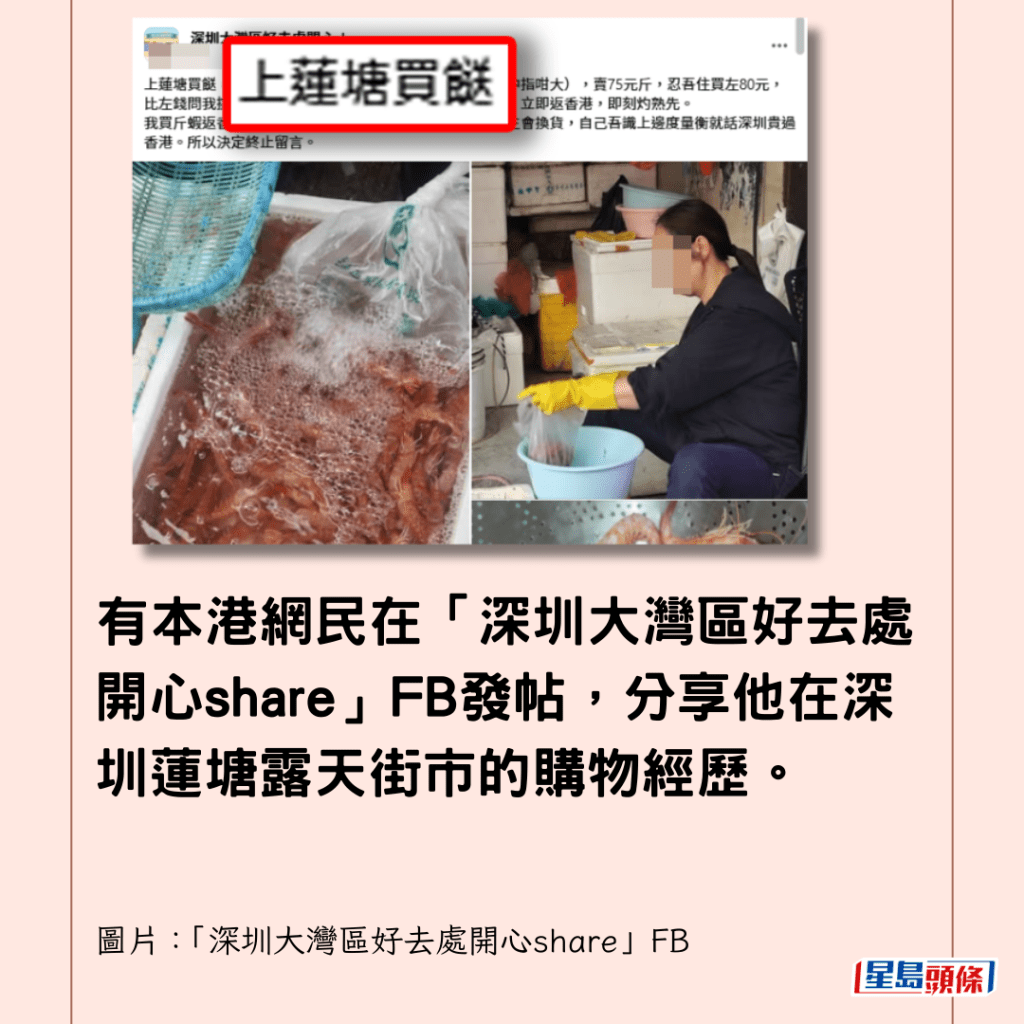 有網民在「深圳大灣區好去處開心share」FB發帖,分享他在深圳蓮塘露天街市的購物經歷。