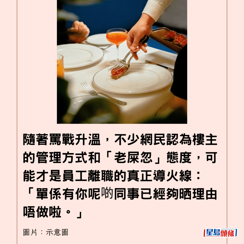 隨著罵戰升溫,不少網民認為樓主的管理方式和「老屎忽」態度,可能才是員工離職的真正導火線:「單係有你呢啲同事已經夠晒理由唔做啦。」