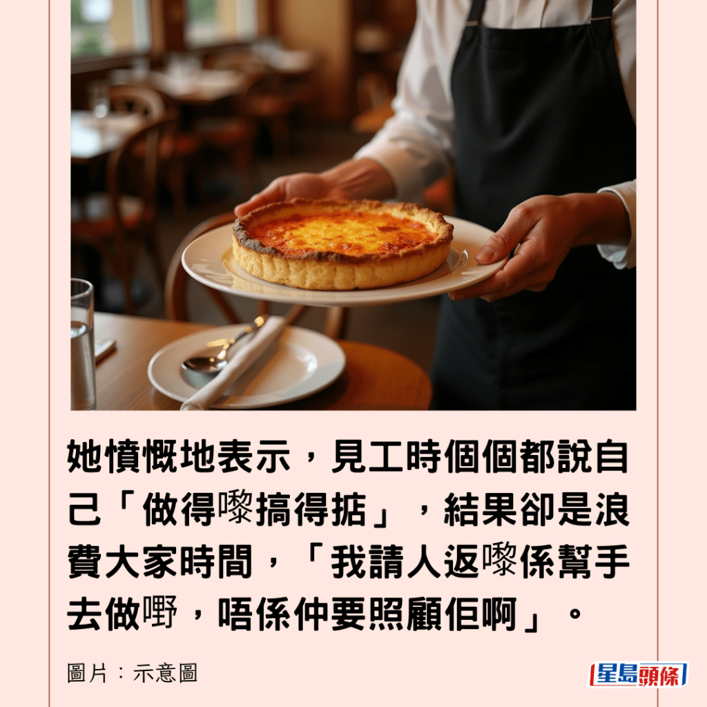 樓主承認自己「人工已經脫離咗$17,000好耐」,但認為「拎三萬蚊嘅人工,就有三萬蚊人工嘅顧慮」,在其位,謀其政,是基本的職業操守。她憤慨地表示,見工時個個都說自己「做得嚟搞得掂」,結果卻是浪費大家時間,「我請人返嚟係幫手去做嘢,唔係仲要照顧佢啊」。