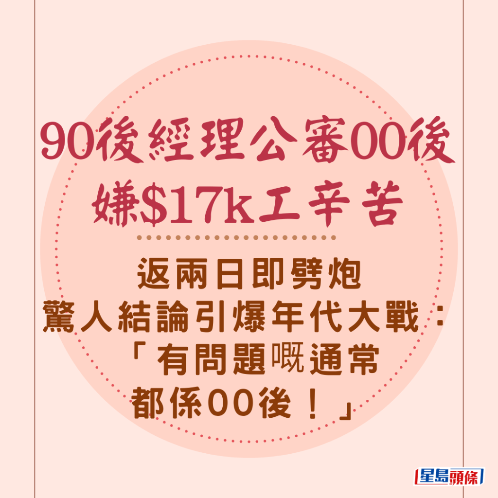 90後經理公審00後嫌$17k工辛苦 返兩日即劈炮 驚人結論引爆年代大戰:「有問題嘅通常都係00後!」↓↓↓↓