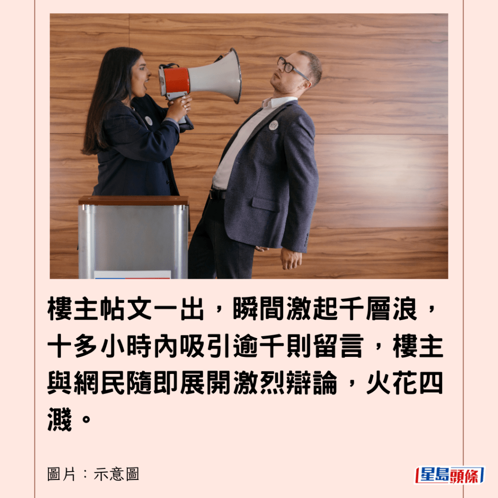 樓主帖文一出,瞬間激起千層浪,十多小時內吸引逾千則留言,樓主與網民隨即展開激烈辯論,火花四濺。