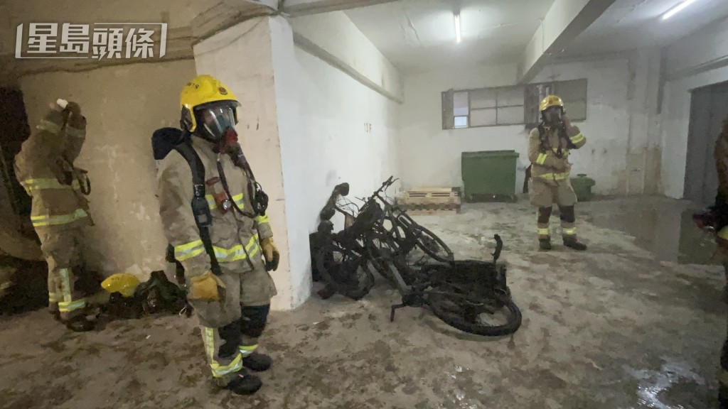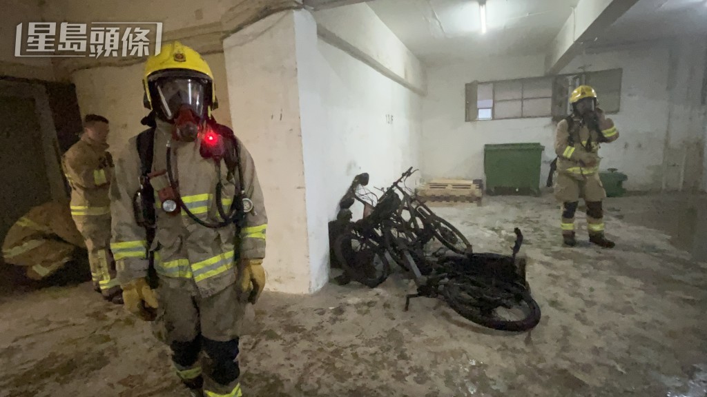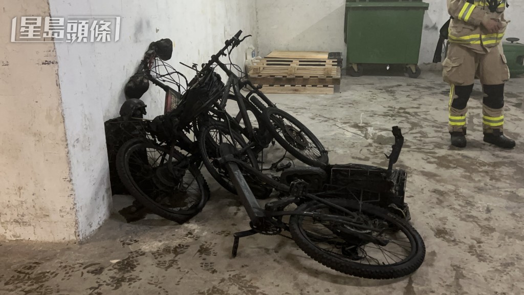 現場所見,多部單車焚毀。人員經調查後,相信是電動單車的鋰電池起火釀禍,幸事件中無人受傷,亦毋須疏散。