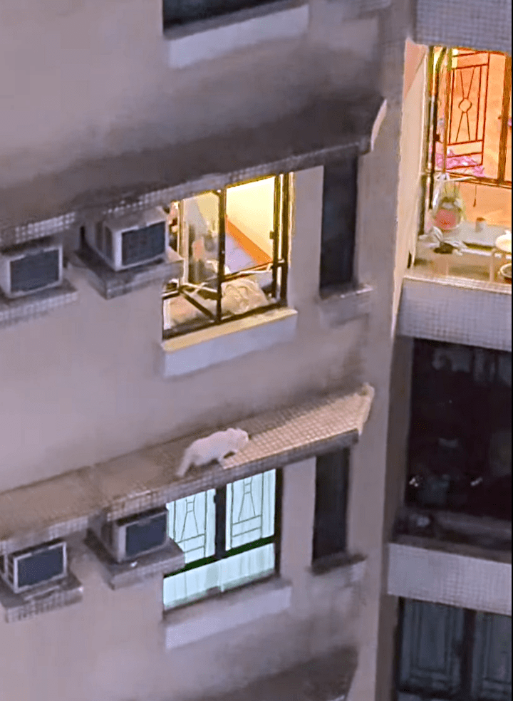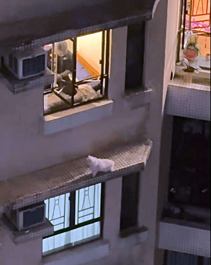 土瓜灣欣榮花園救貓墮樓慘劇更多細節曝光,有街坊拍到昨晚意外後,該貓被困窗台的驚險過程。據了解,姓官(63歲)死者於十多年前飼養一頭英國短毛貓,但家中沒裝窗紗,該貓多次跳落花槽或鄰居窗台,官男曾多次爬窗救回愛貓,無奈一次意外足以致命。
