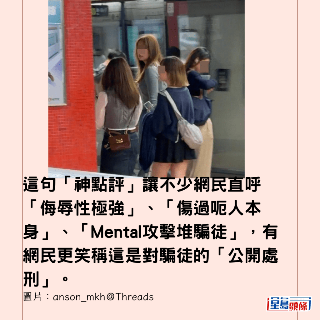 這句「神點評」讓不少網民直呼「侮辱性極強」、「傷過呃人本身」、「Mental攻擊堆騙徒」,有網民更笑稱這是對騙徒的「公開處刑」。