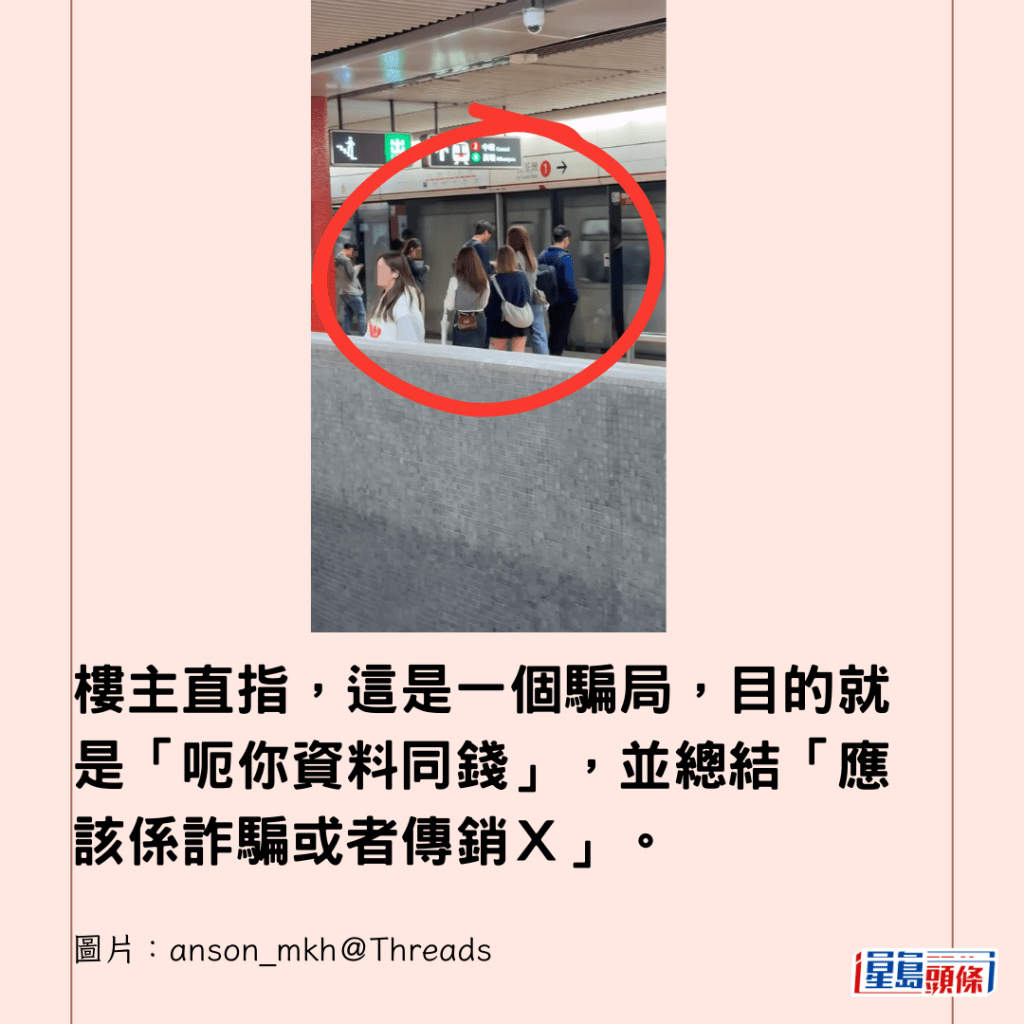 樓主直指,這是一個騙局,目的就是「呃你資料同錢」,並總結「應該係詐騙或者傳銷X」。