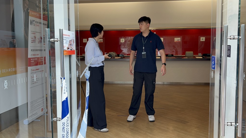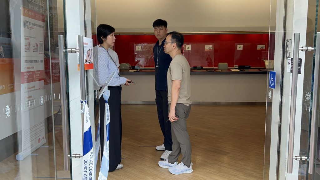 探員在銀行內調查。楊偉亨攝