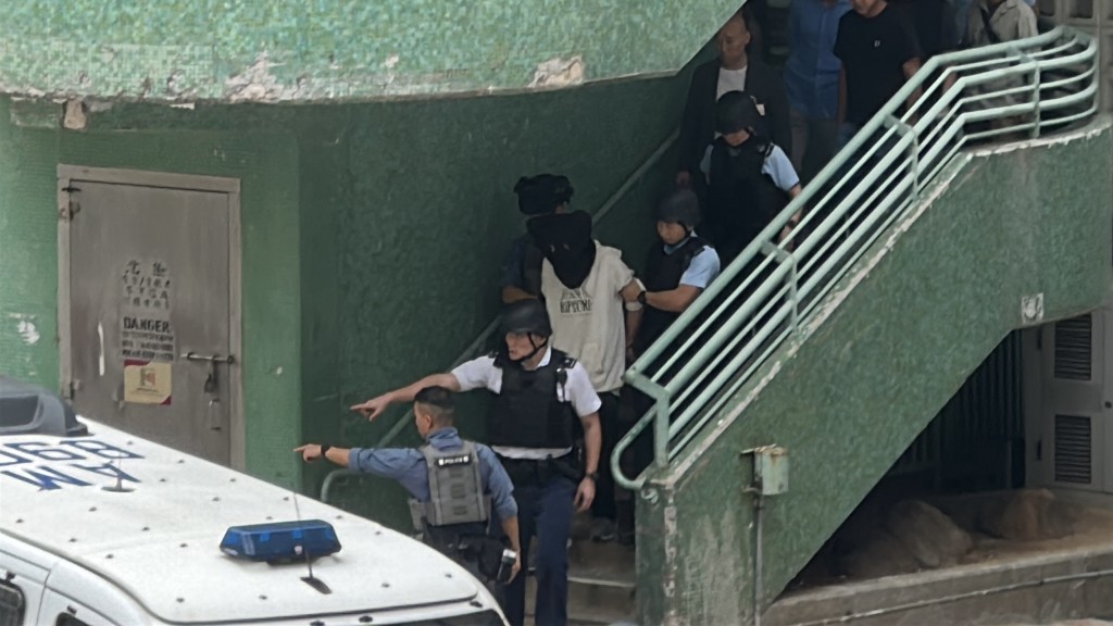 疑犯被押上警車。劉漢權攝
