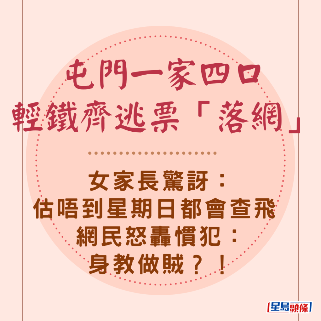 屯門一家逃票斷正 女家長金句惹公憤:「估唔到星期日都會查飛!」